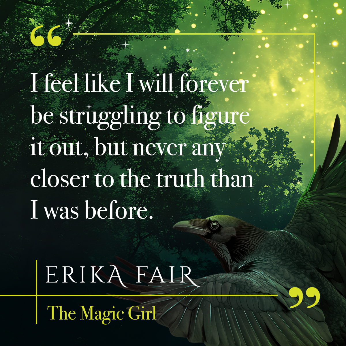 Erika Fair was born and raised in Texas, where she lives with her husband and son. When she isn’t writing stories or forcing her favorite music upon her family, she can usually be found hiking or planning future adventures. She has a penchant for iced coffee, and she’s always watching for ravens.